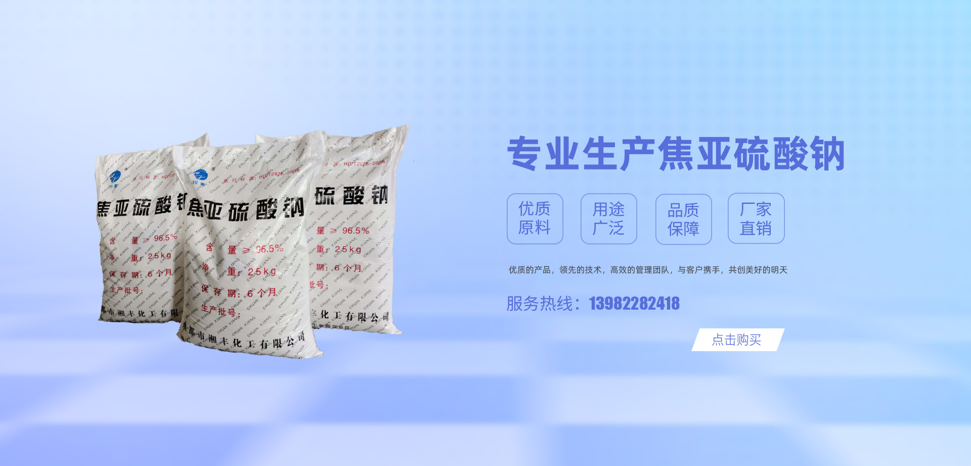 成都市湘豐化工有限公司座落在四川省成都市新津精細(xì)化工園中,占地10000多平方米,是一家有十幾年焦亞硫酸鈉生產(chǎn)經(jīng)驗的企業(yè),設(shè)計年生產(chǎn)能力2萬噸。 焦亞硫酸鈉又稱二硫五氧酸鈉,重硫氧,有著廣泛的用途:在醫(yī)藥工業(yè)中用于生產(chǎn)氯仿、苯丙砜和苯甲醛;橡膠工業(yè)用做凝固劑;印染工業(yè)用作棉布漂白后的脫氯劑、棉布煮煉劑;制革工業(yè)用于皮革處理,能使皮革柔軟,豐滿、堅韌,具有防水、抗折、耐磨等性能...